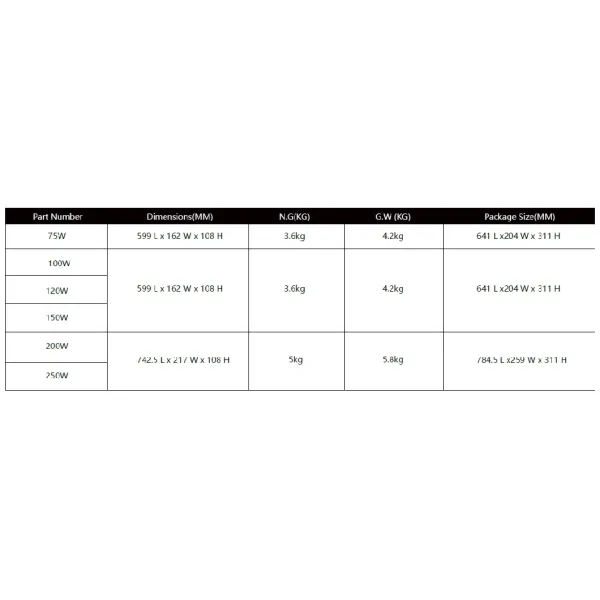 | 250W | 43750lm | 360pcs |